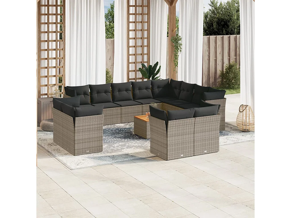Salon de jardin avec coussins 13 pcs gris résine tressée