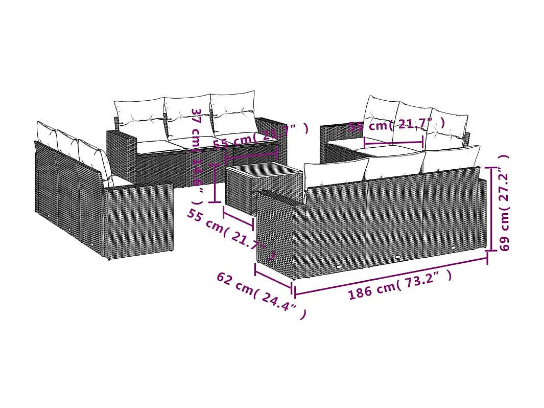 Salon de jardin avec coussins 13 pcs gris résine tressée