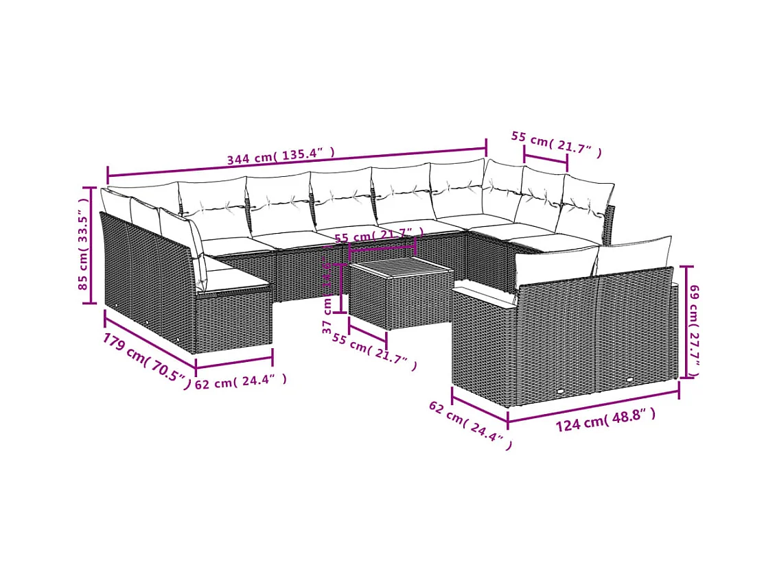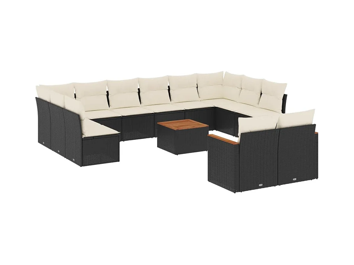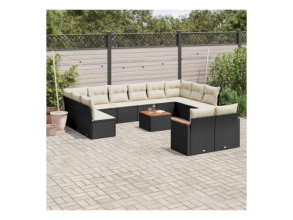 Salon de jardin avec coussins 13 pcs noir résine tressée