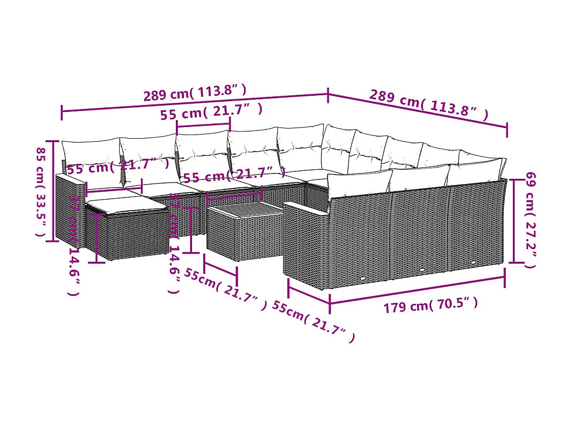 Salon de jardin avec coussins 13 pcs noir résine tressée