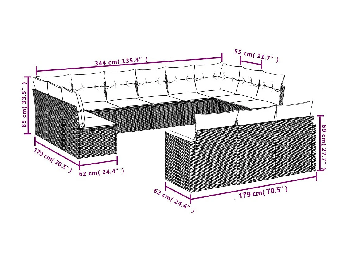 Salon de jardin avec coussins 13 pcs noir résine tressée