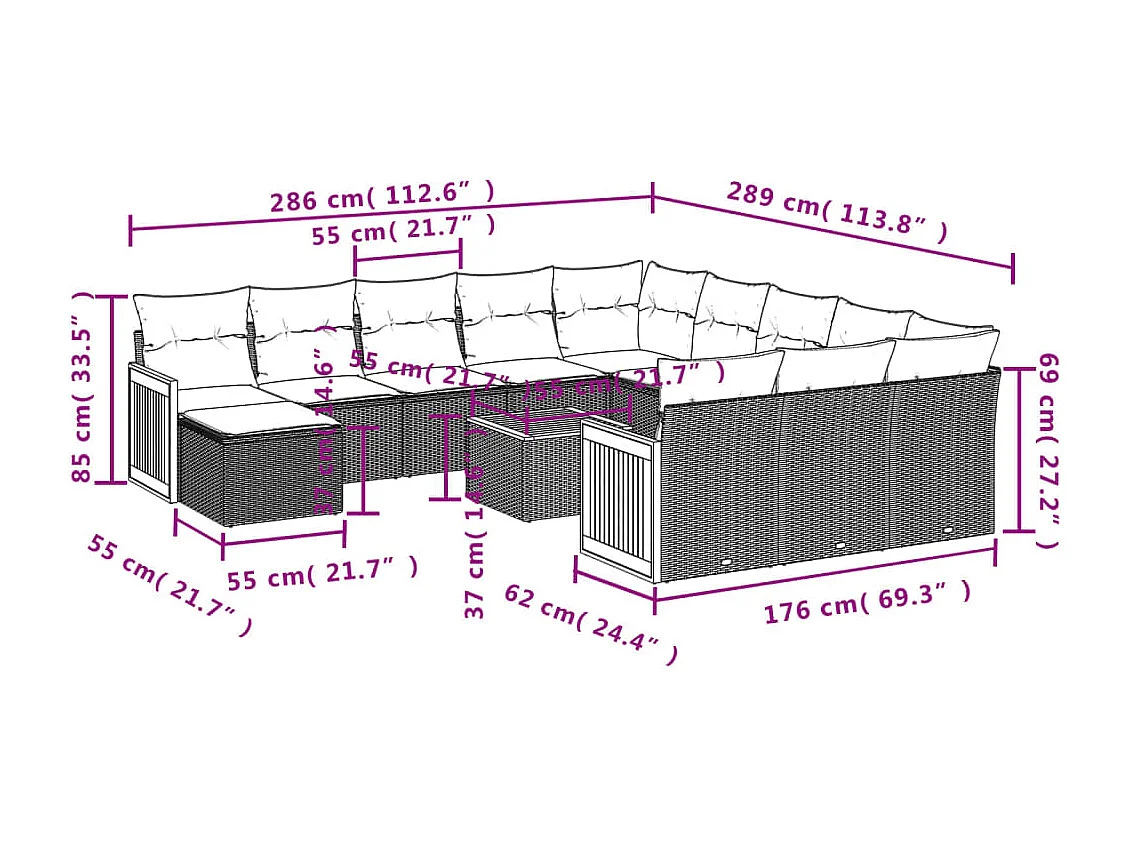 Salon de jardin avec coussins 13 pcs noir résine tressée