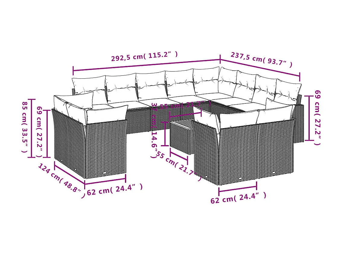 Salon de jardin avec coussins 13 pcs noir résine tressée