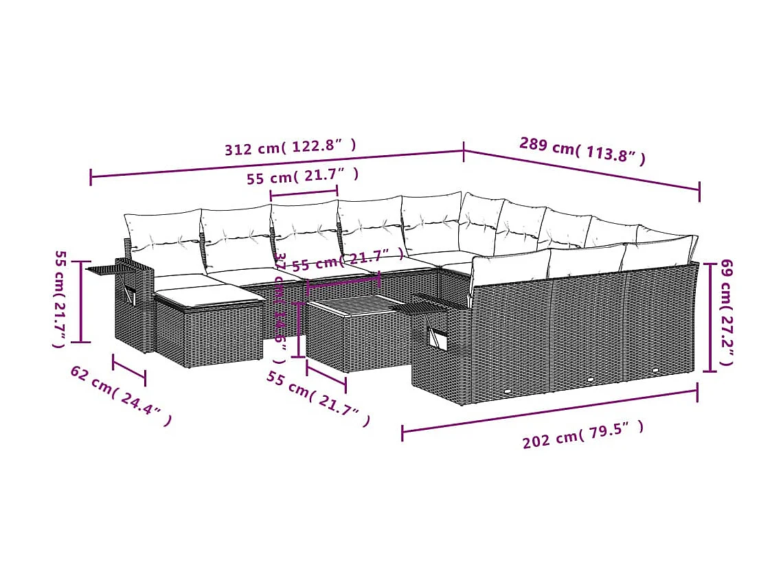 Salon de jardin avec coussins 13 pcs noir résine tressée