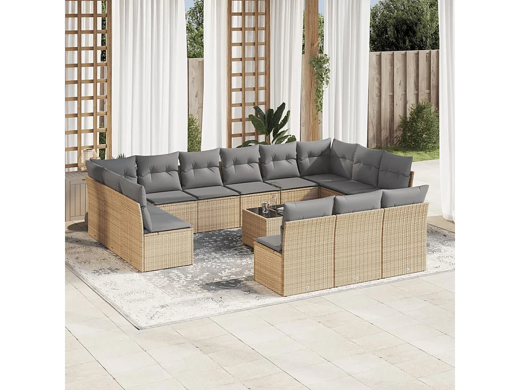Salon de jardin avec coussins 14 pcs beige résine tressée