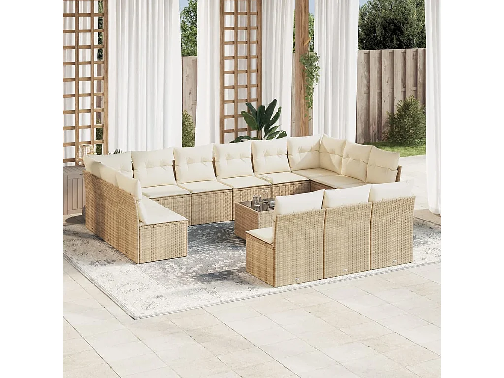 Salon de jardin avec coussins 14 pcs beige résine tressée
