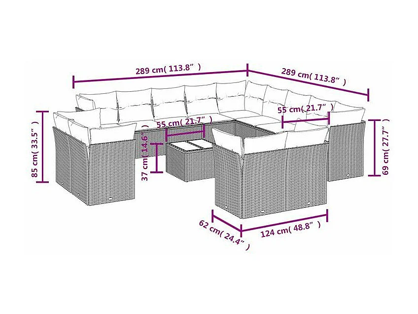 Salon de jardin avec coussins 14 pcs gris clair résine tressée