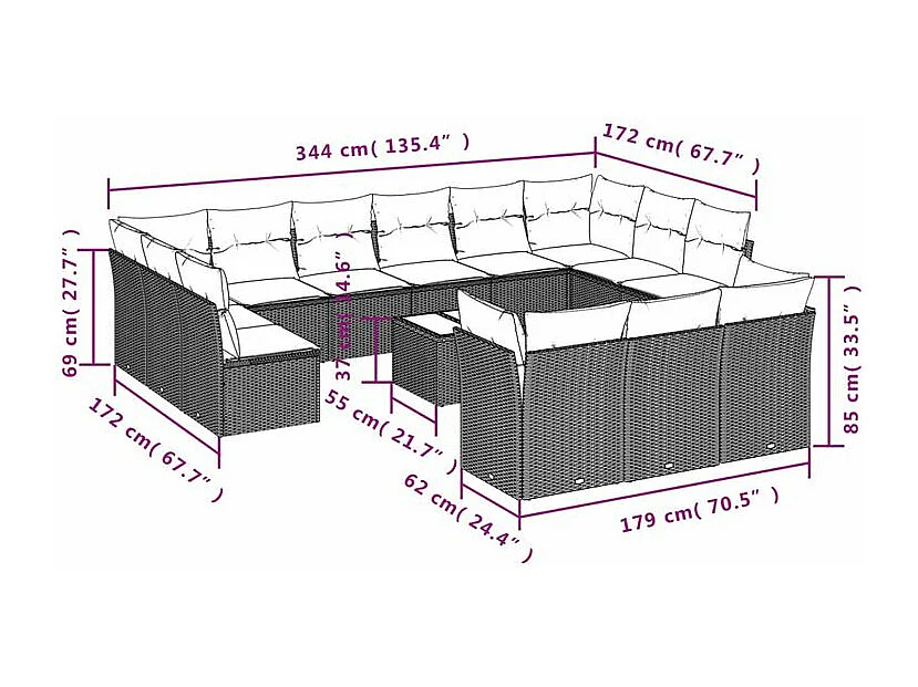 Salon de jardin avec coussins 14 pcs gris clair résine tressée