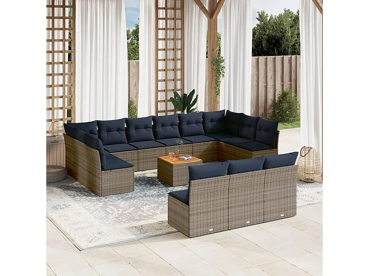 Salon de jardin avec coussins 14 pcs gris résine tressée