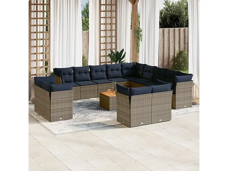 Salon de jardin avec coussins 14 pcs gris résine tressée