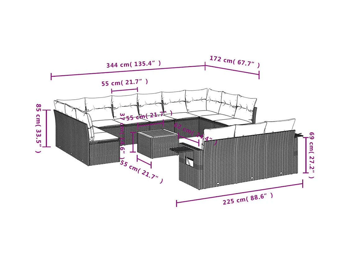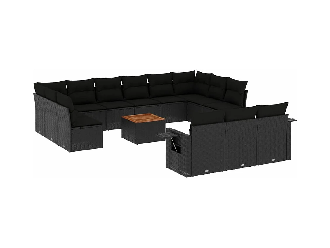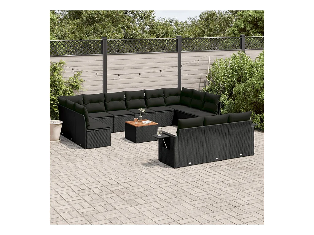 Salon de jardin avec coussins 14 pcs noir résine tressée