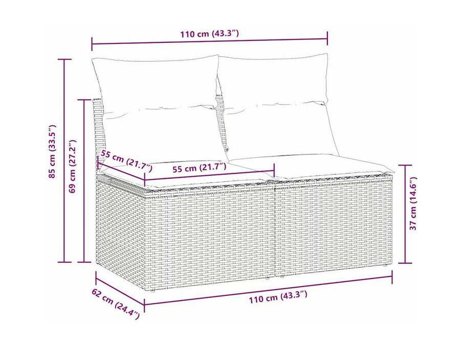 Salon de jardin avec coussins 2 pcs noir résine tressée acacia