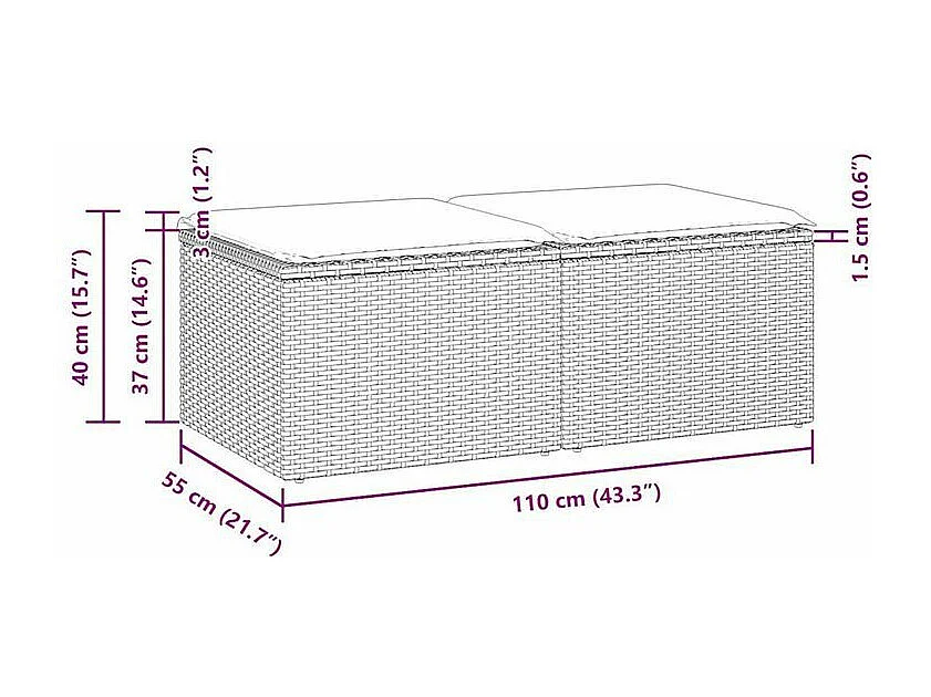 Salon de jardin avec coussins 2 pcs noir résine tressée acacia
