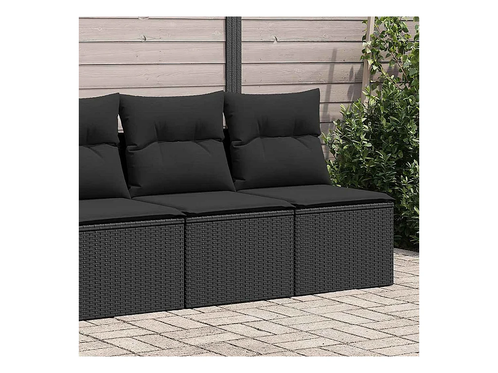 Salon de jardin 4 pcs avec coussins noir résine tressée