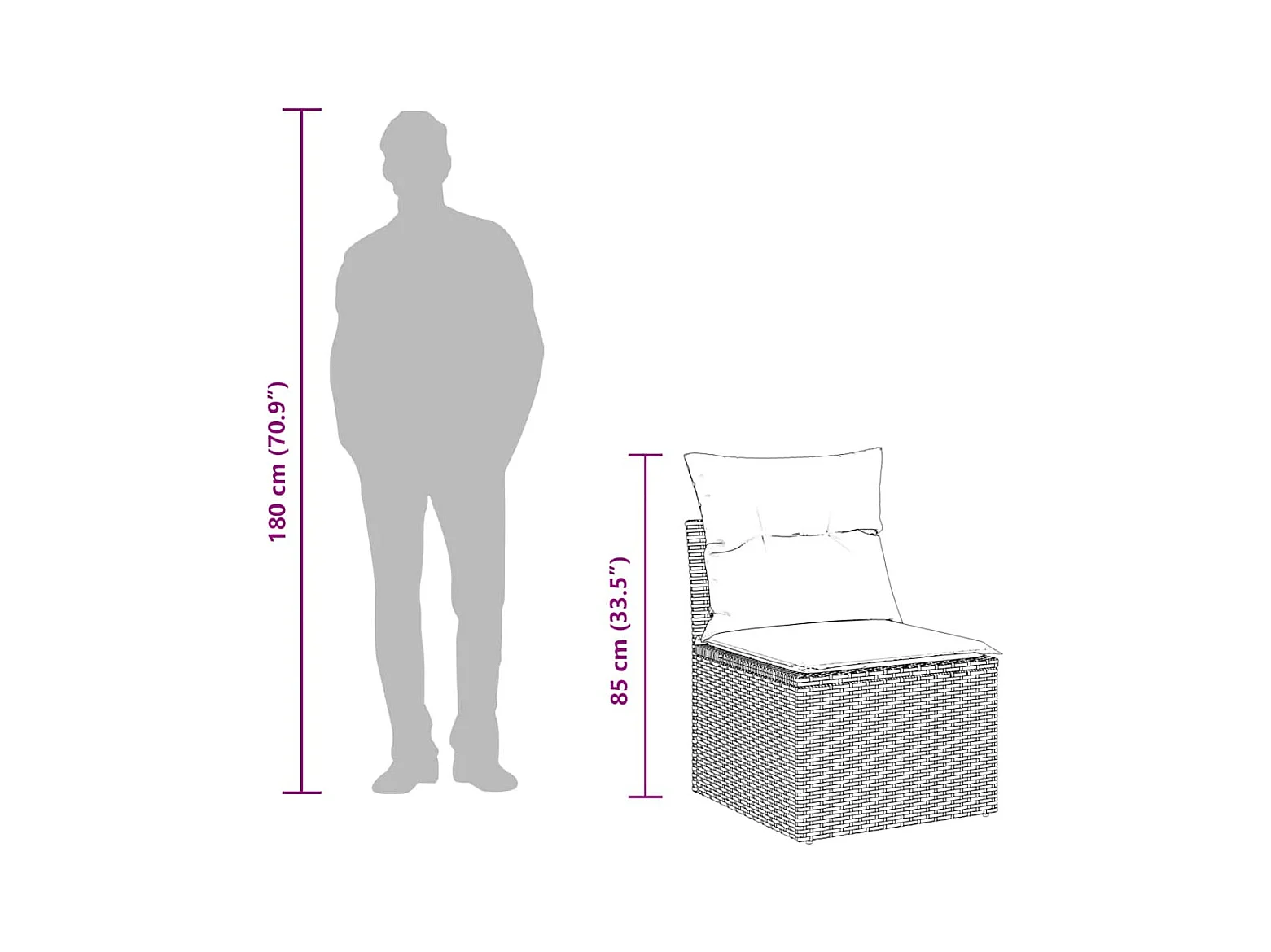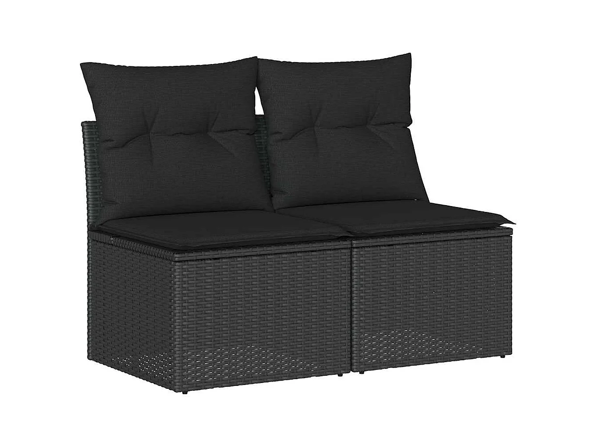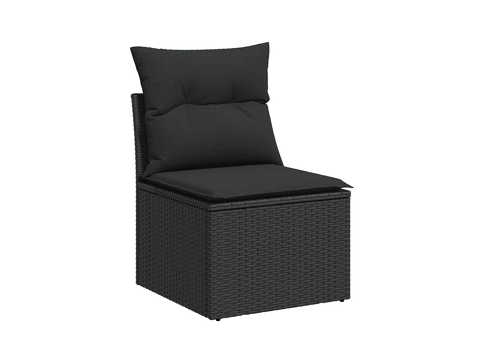 Salon de jardin 7 pcs avec coussins noir résine tressée