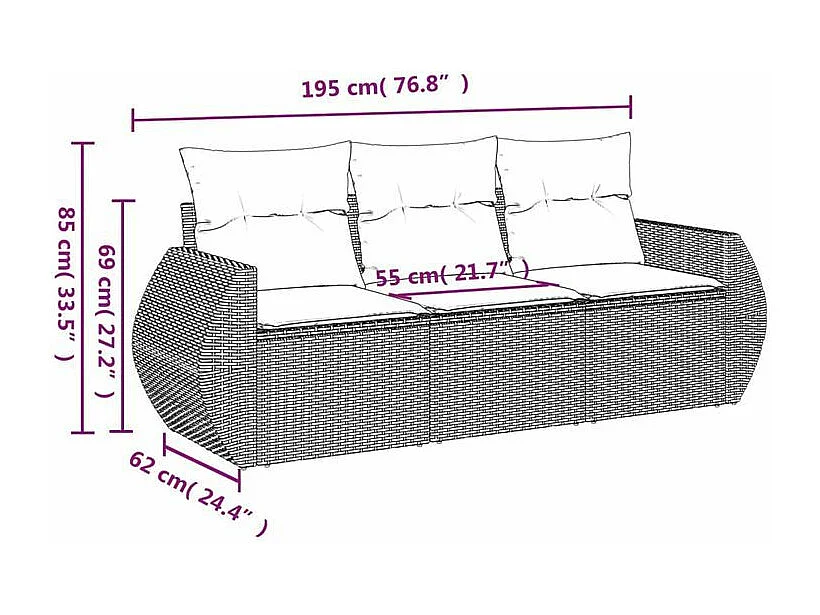 Salon de jardin avec coussins 3 pcs gris clair résine tressée