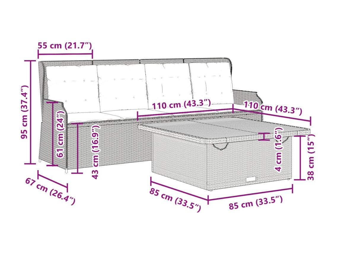 Salon de jardin avec coussins 3 pièces gris résine tressée