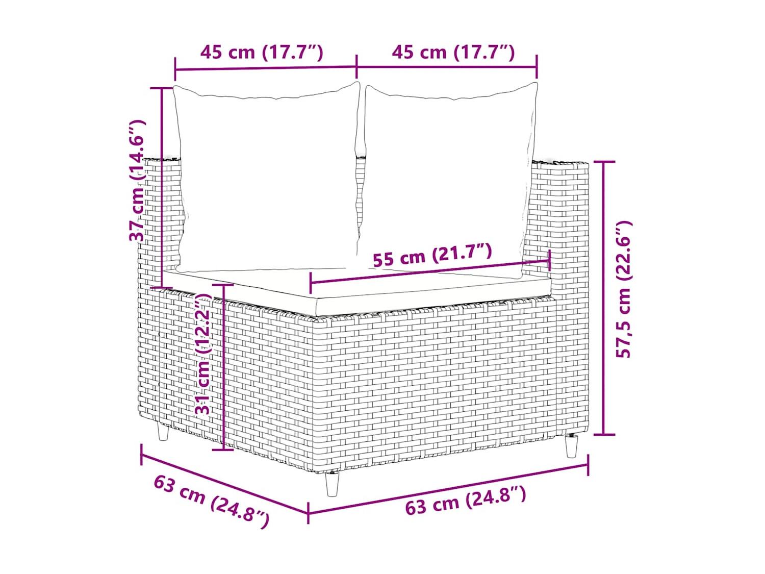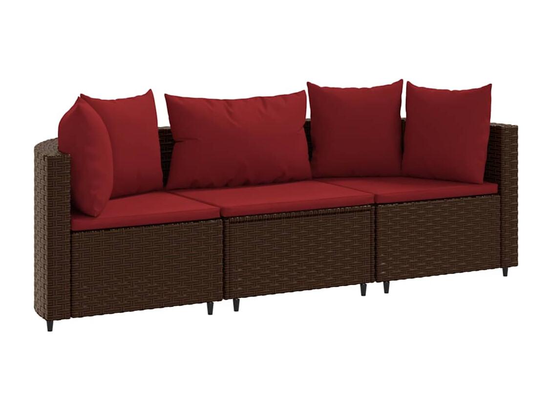 Salon de jardin avec coussins 3 pièces marron résine tressée