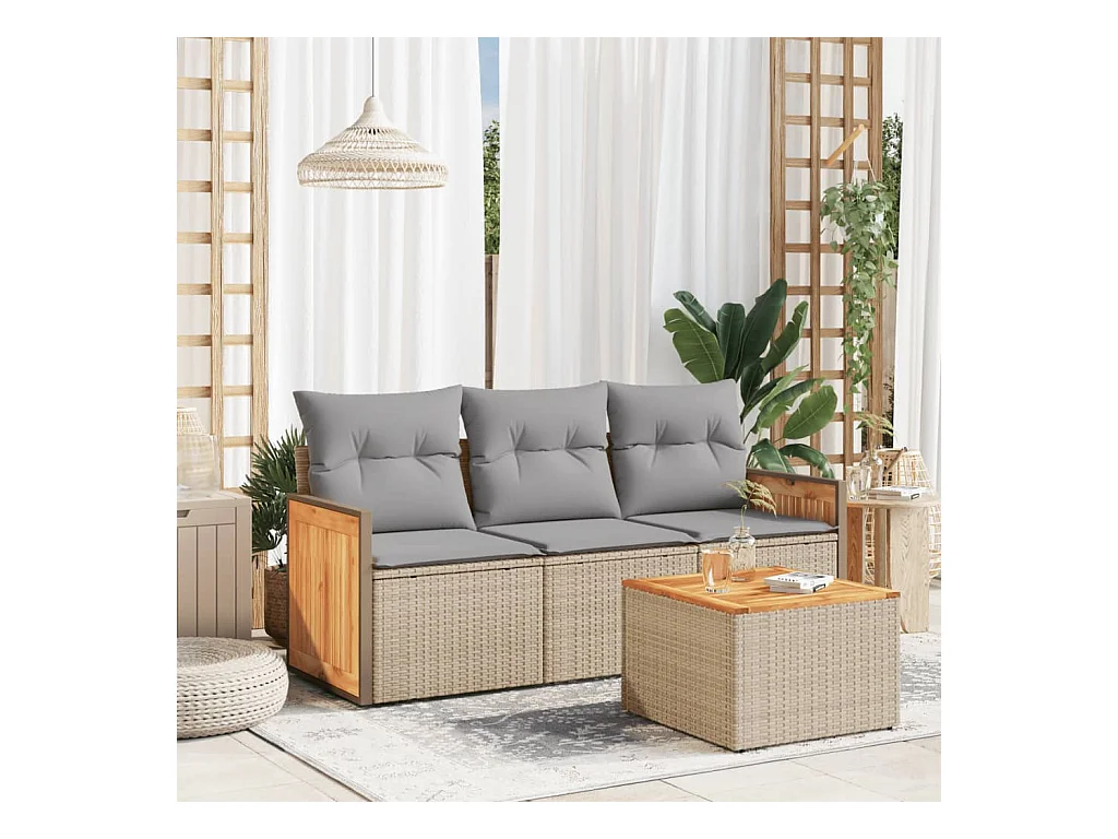 Salon de jardin avec coussins 4 pcs beige résine tressée