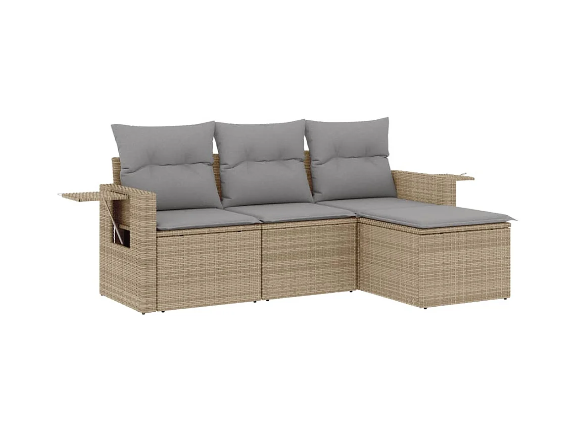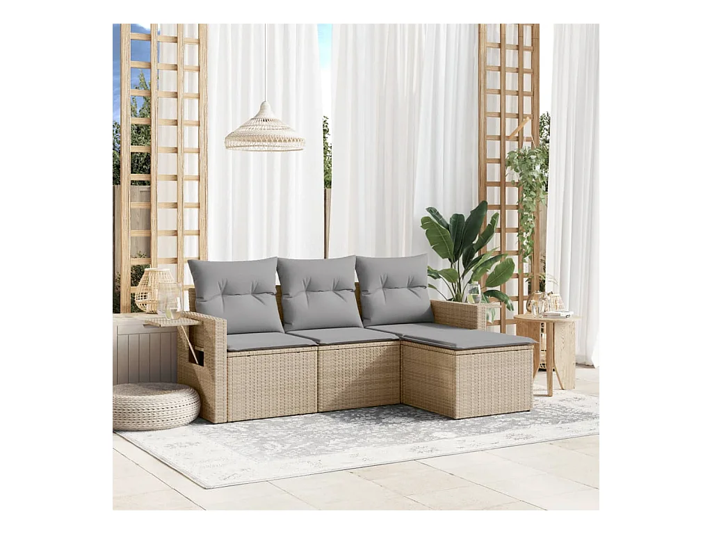 Salon de jardin avec coussins 4 pcs beige résine tressée FR64467