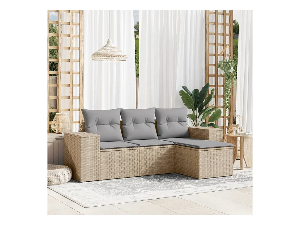 Salon de jardin avec coussins 4 pcs beige résine tressée FR71807