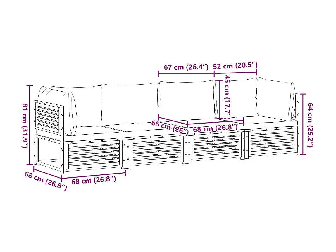 Salon de jardin avec coussins 4 pcs bois d'acacia massif