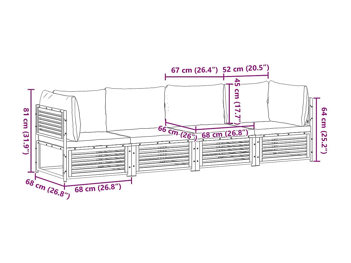 Salon de jardin avec coussins 4 pcs bois d'acacia massif