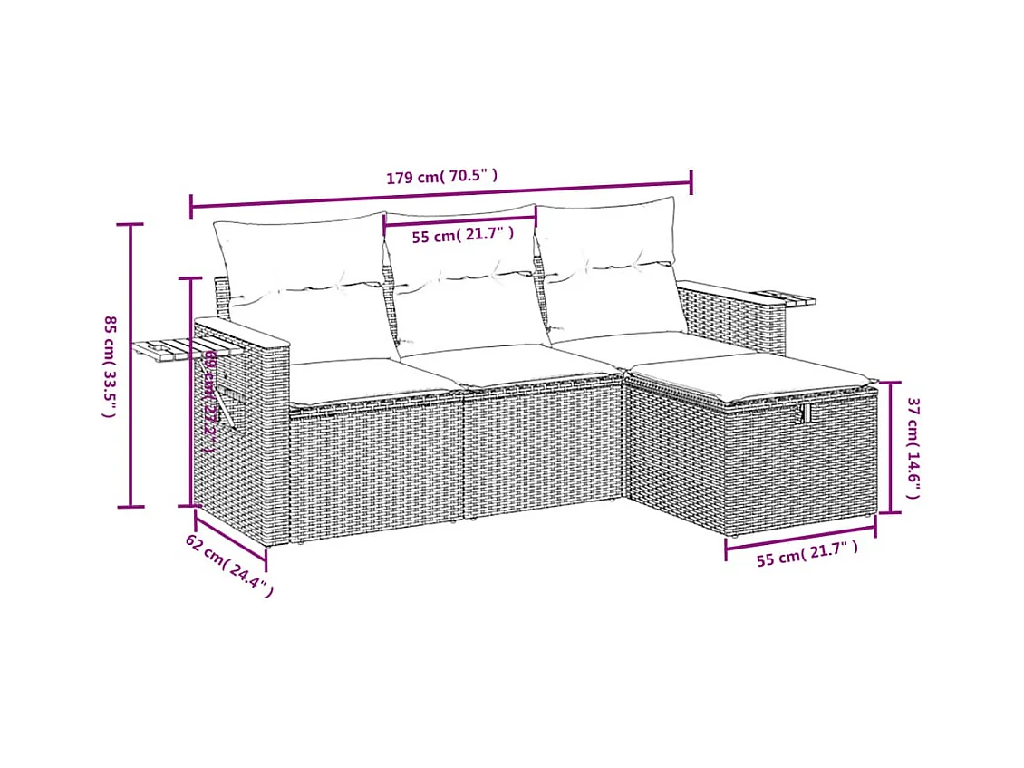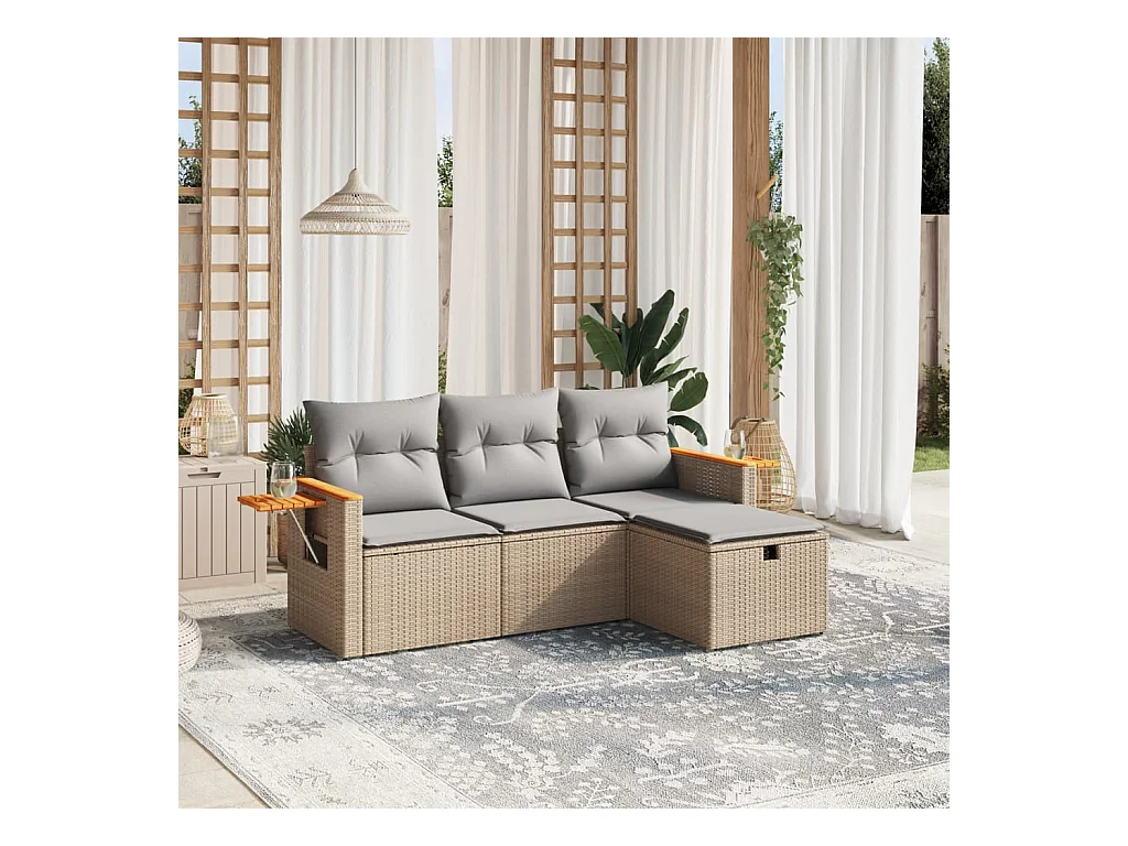 Salon de jardin avec coussins 4pcs mélange beige résine tressée FR84175