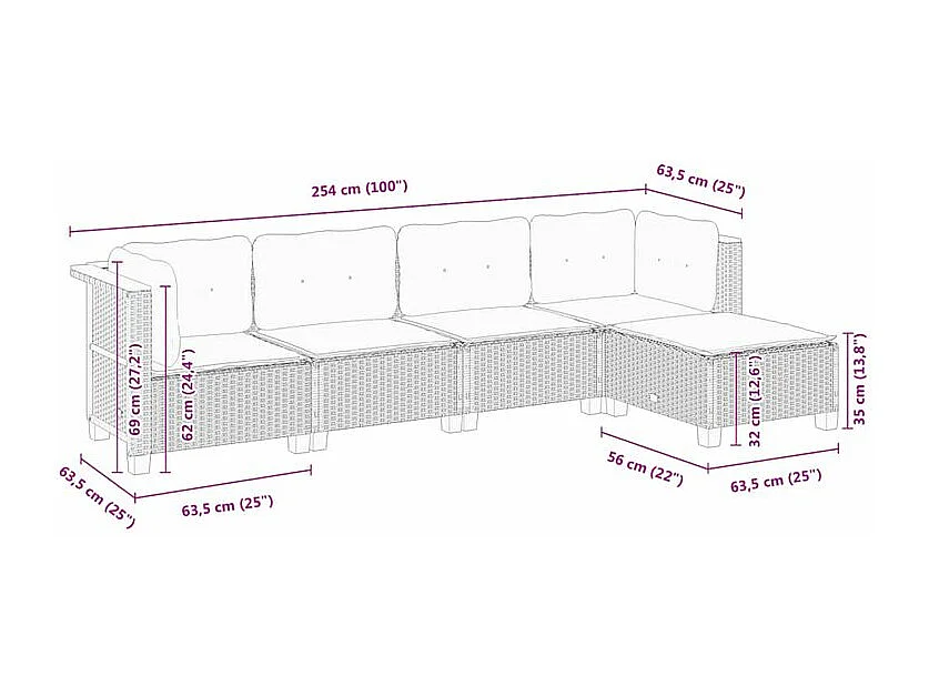 Salon de jardin avec coussins 5 pcs beige résine tressée