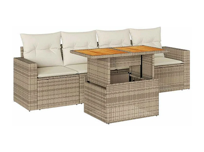 Salon de jardin avec coussins 5 pcs beige résine tressée