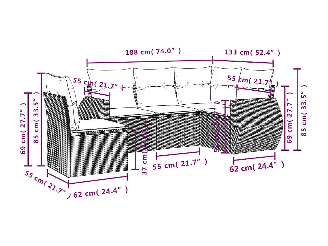 Salon de jardin avec coussins 5 pcs beige résine tressée