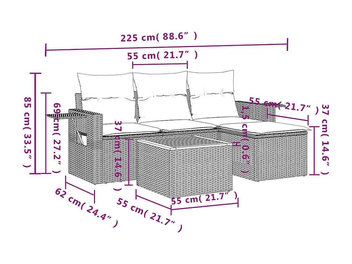 Salon de jardin avec coussins 5 pcs beige résine tressée