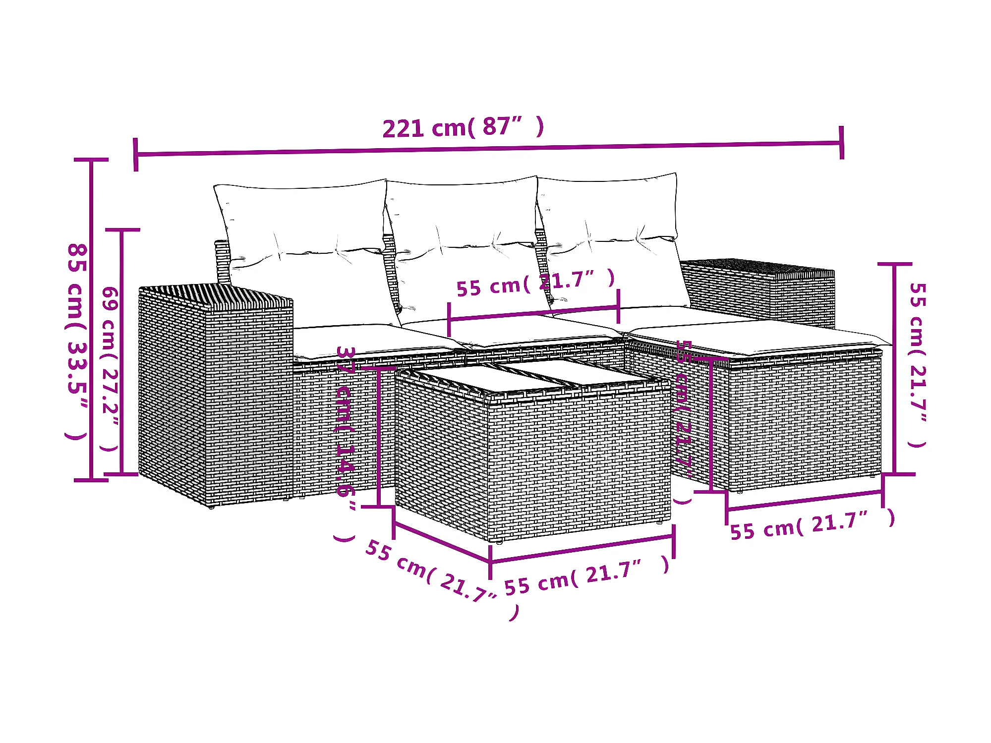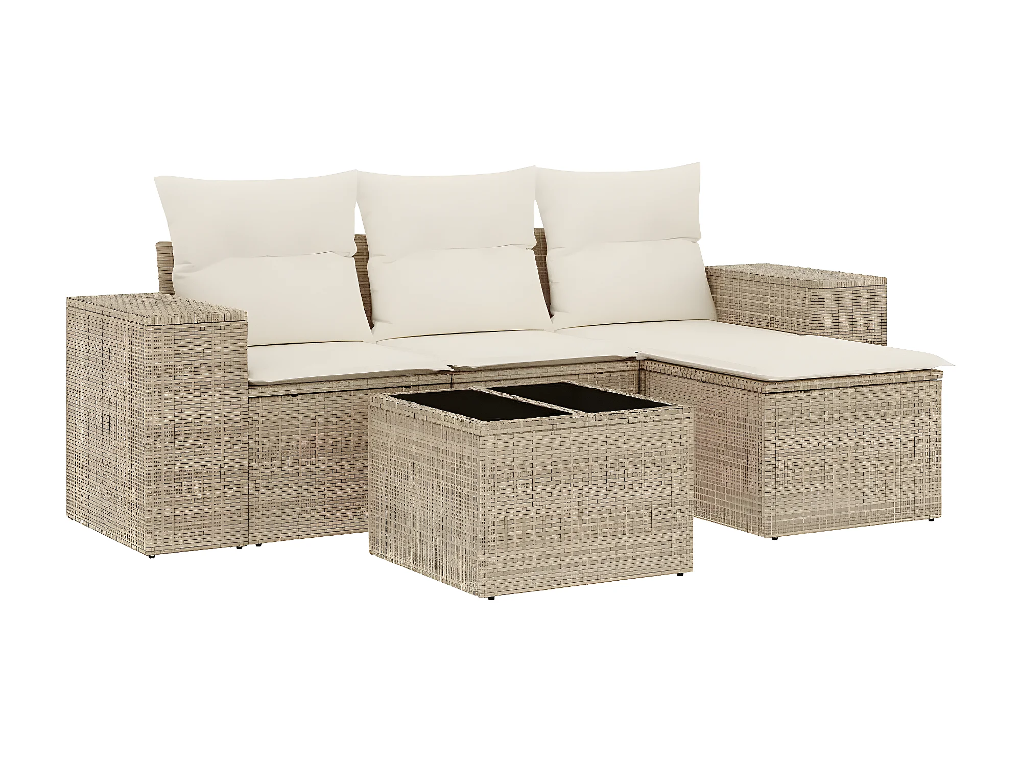 Salon de jardin avec coussins 5 pcs beige résine tressée