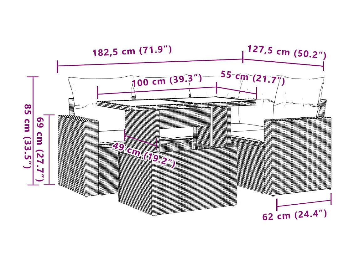 Salon de jardin avec coussins 5 pcs beige résine tressée