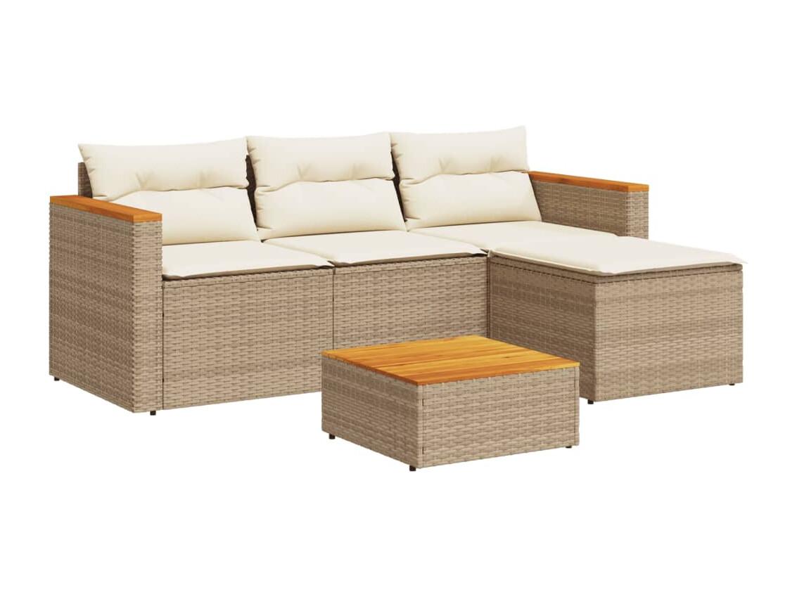Salon de jardin avec coussins 5 pcs beige résine tressée acacia