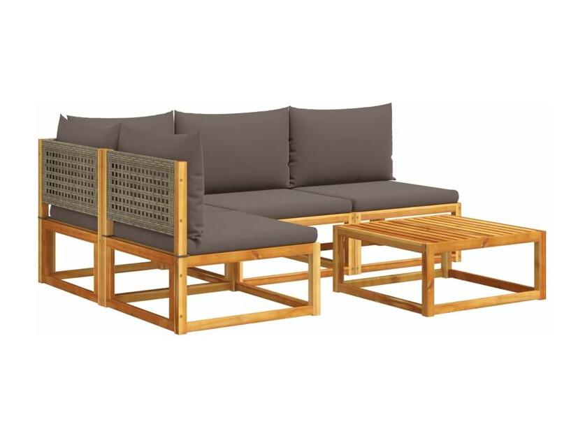 Salon de jardin avec coussins 5 pcs Bois d'acacia solide