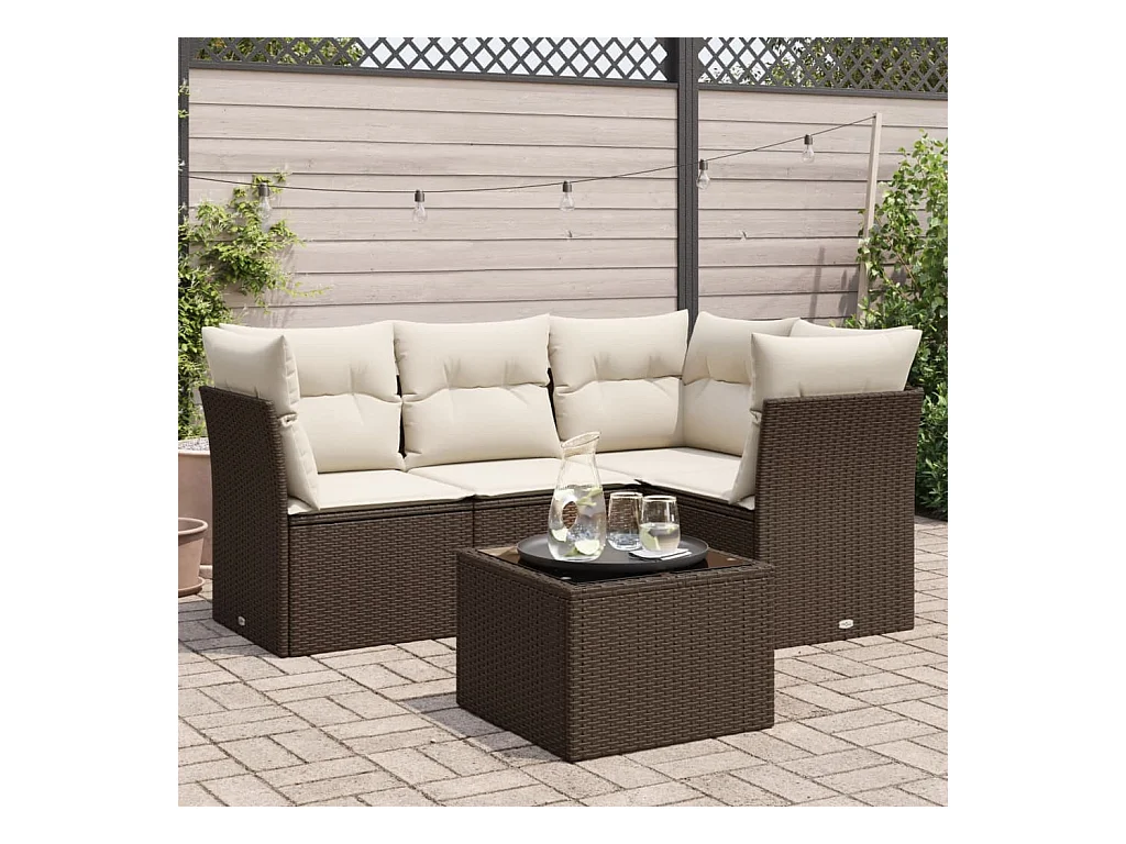 Salon de jardin avec coussins 5 pcs marron résine tressée