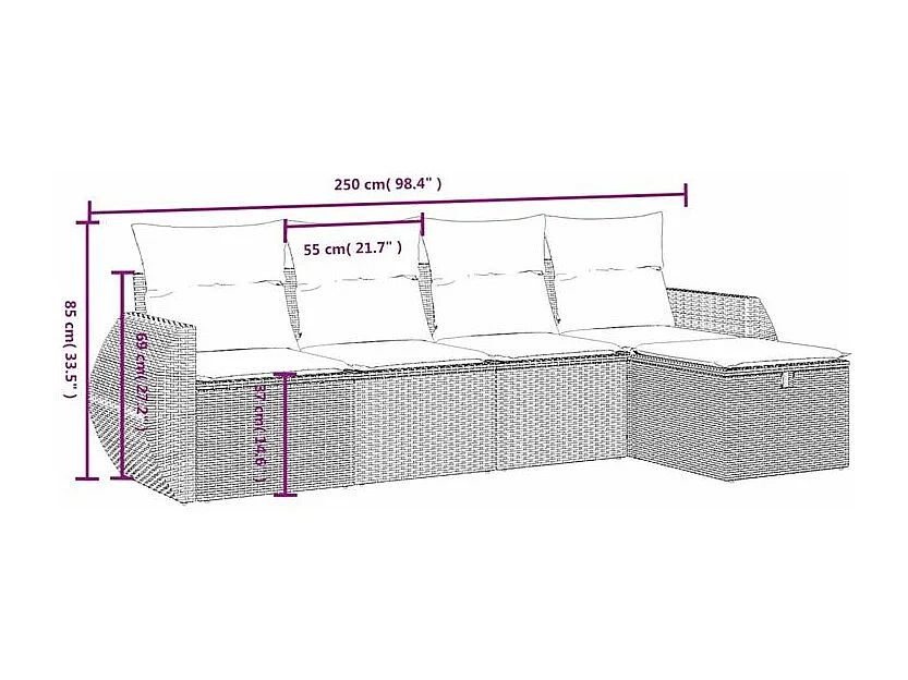 Salon de jardin avec coussins 5 pcs marron résine tressée