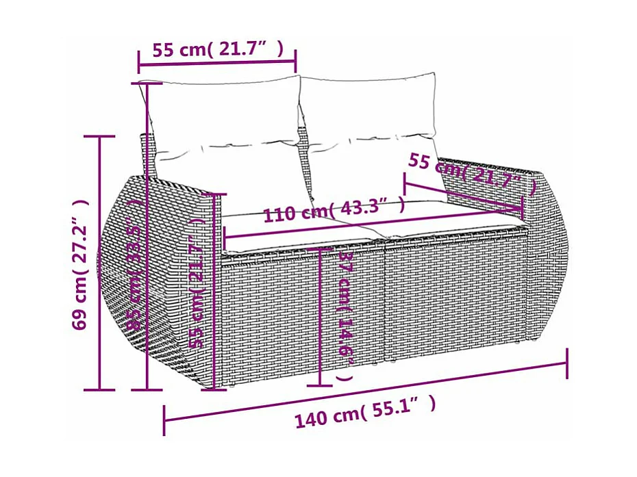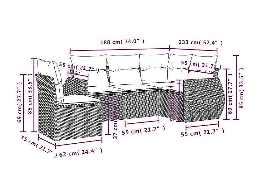 Salon de jardin avec coussins 5 pcs marron résine tressée