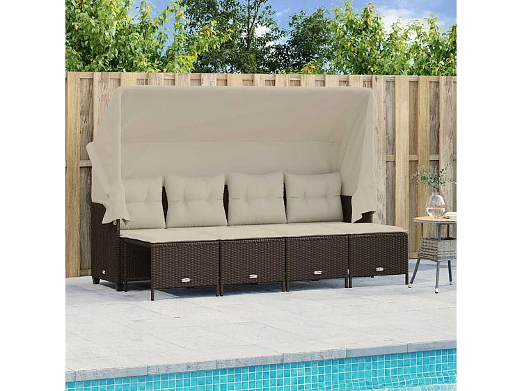 Salon de jardin avec coussins 5 pcs marron résine tressée
