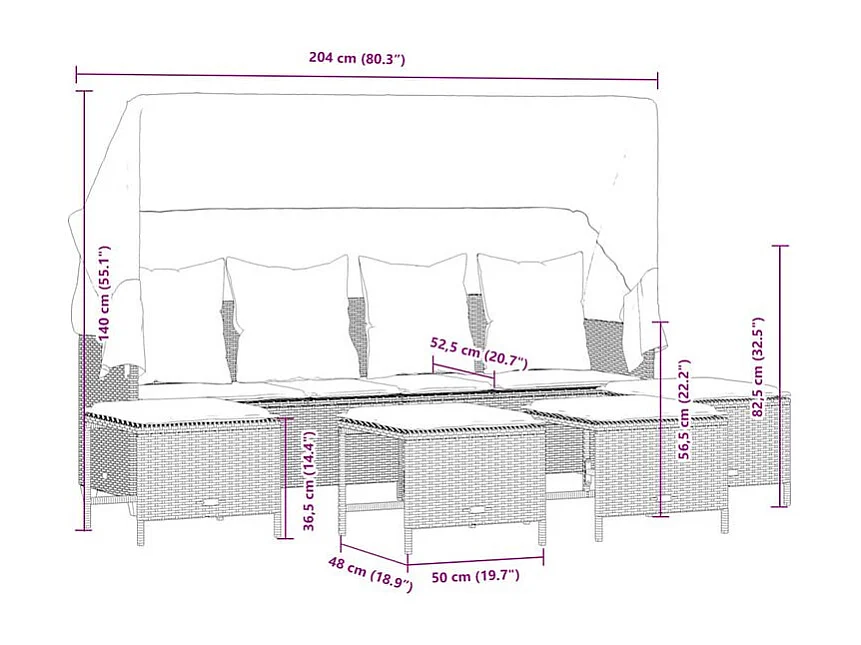 Salon de jardin avec coussins 5 pcs marron résine tressée