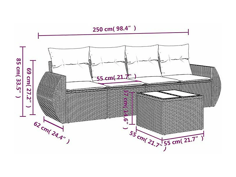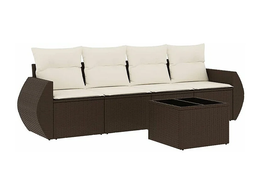Salon de jardin avec coussins 5 pcs marron résine tressée