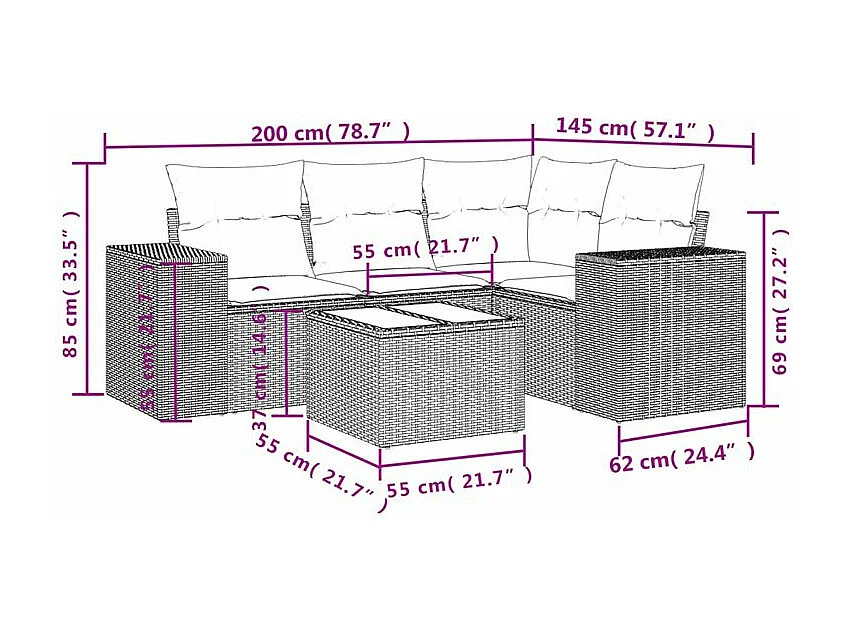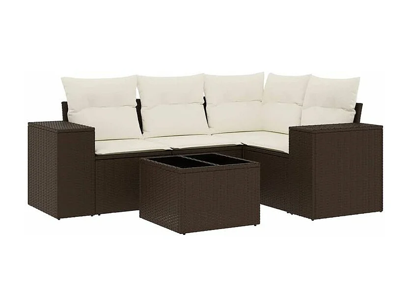 Salon de jardin avec coussins 5 pcs marron résine tressée