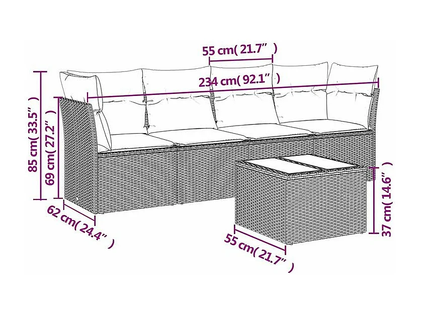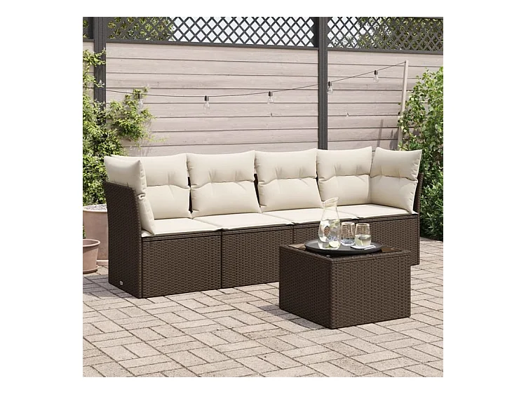 Salon de jardin avec coussins 5 pcs marron résine tressée
