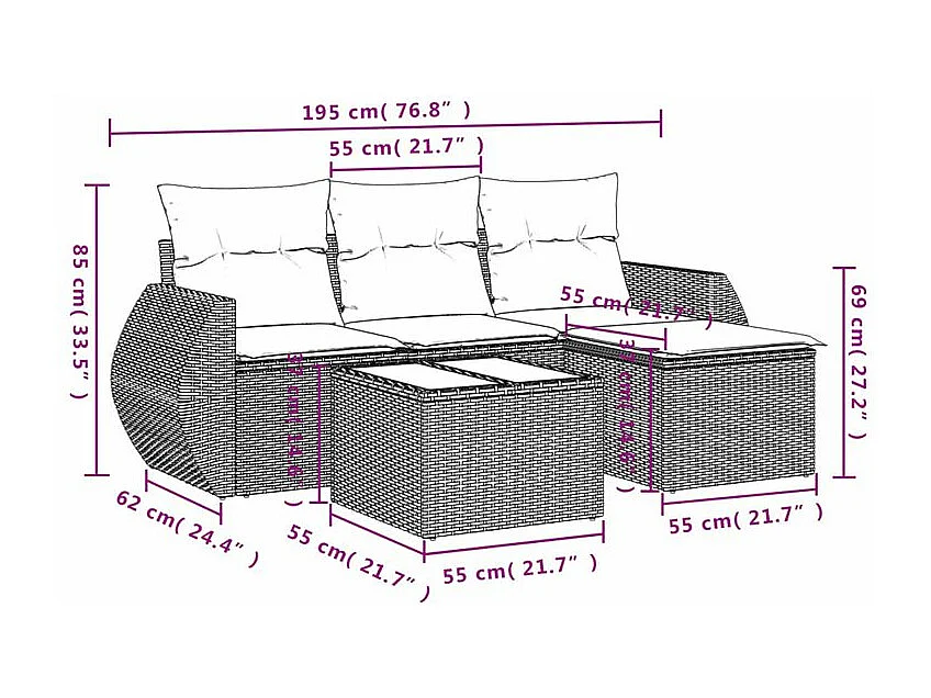 Salon de jardin avec coussins 5 pcs marron résine tressée