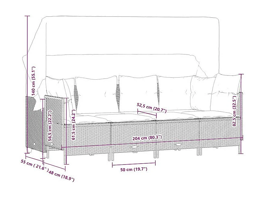 Salon de jardin avec coussins 5 pcs marron résine tressée