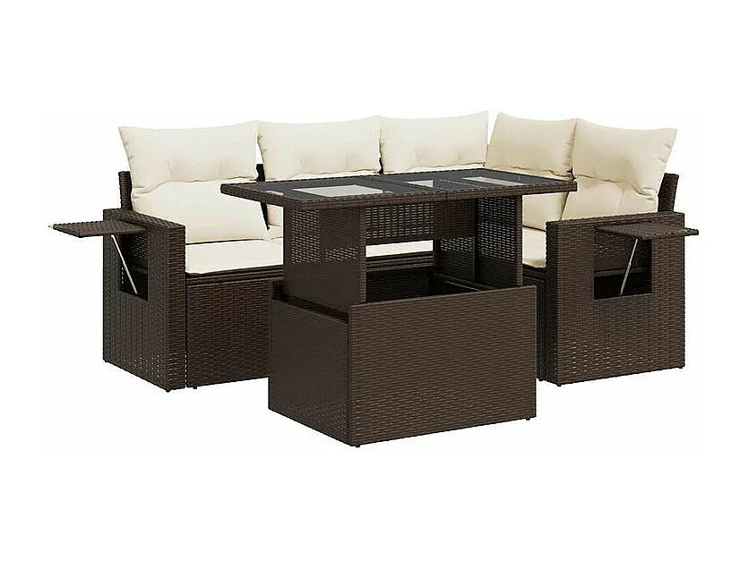 Salon de jardin avec coussins 5 pcs marron résine tressée