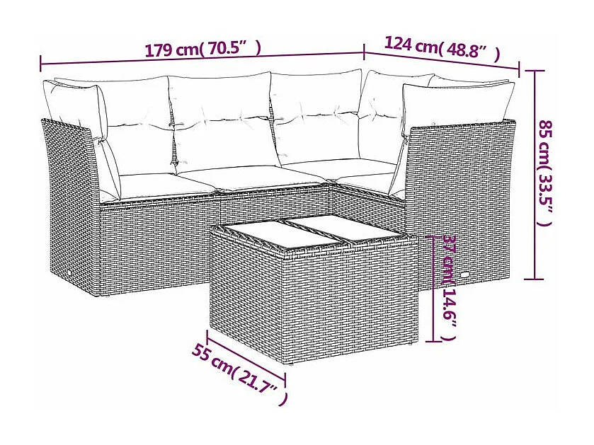 Salon de jardin avec coussins 5 pcs marron résine tressée