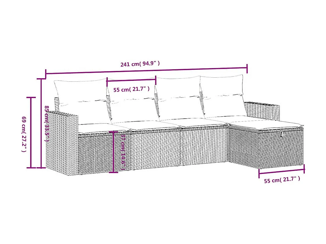 Salon de jardin avec coussins 5 pcs marron résine tressée