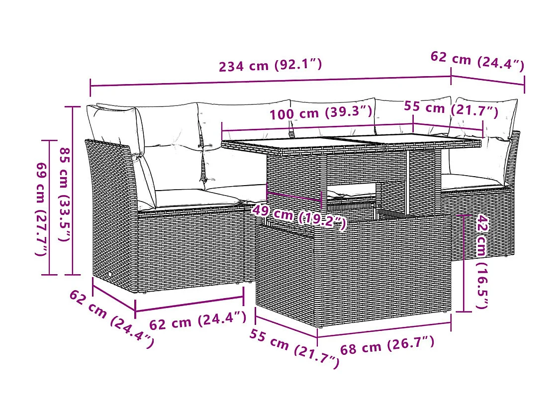Salon de jardin avec coussins 5 pcs marron résine tressée
